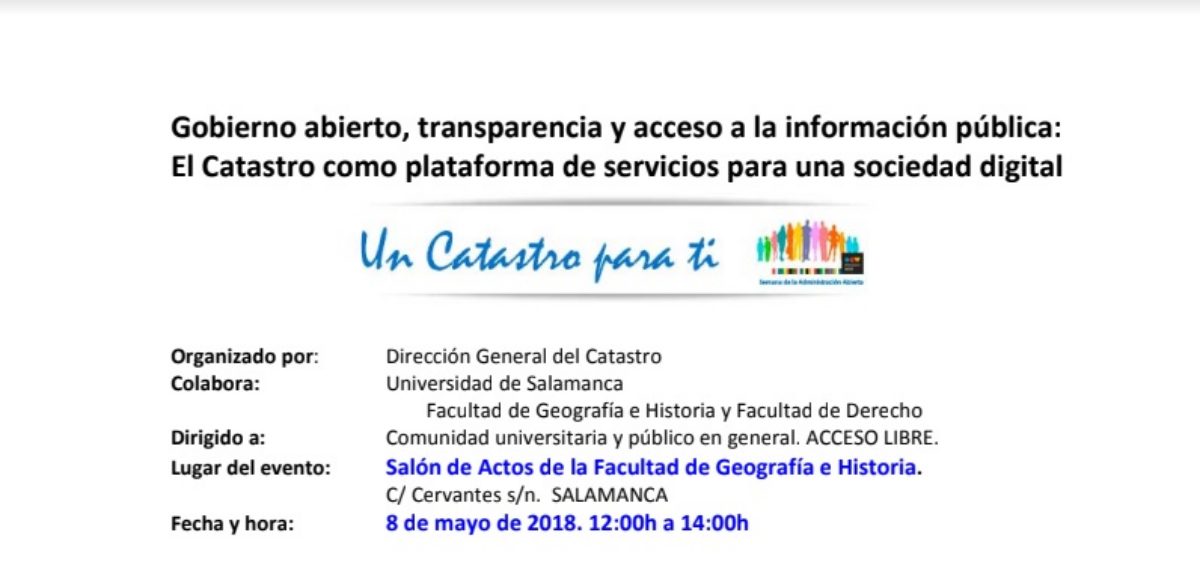 Fecha y hora: 8 de mayo, de 12:00 a 14:00h. Lugar: Facultad de Geografía e Historia. Salón de Actos. Organiza: Dirección General del Catastro. Programa completo: Jornada catastroLeer Más
