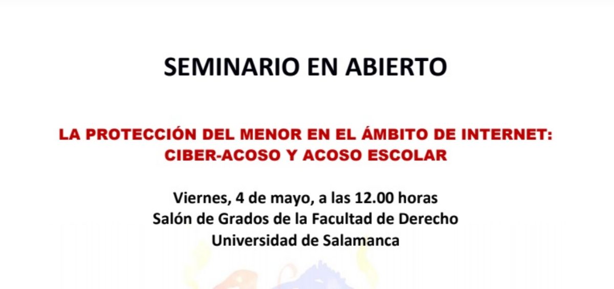 Organiza: Clínica Jurídica de Acción Social. Facultad de Derecho Usal. Fecha y hora: Viernes, 4 de mayo, a las 12.00 horas. Lugar: Salón de Grados de la Facultad de Derecho. CARTEL.Seminario Menores 4.5.2018-1Leer Más