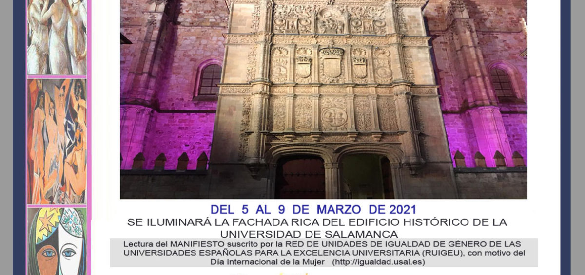 Lectura del MANIFIESTO suscrito por la RED DE UNIDADES DE IGUALDAD DE GÉNERO DE LAS UNIVERSIDADES ESPAÑOLAS PARA LA EXCELENCIA UNIVERSITARIA (RUIGEU), con motivo del Día Internacional de la Mujer, que se realizará por las/os miembros de la Unidad de Igualdad de la USAL y de su Red de Igualdad (https://igualdad.usal.es)
