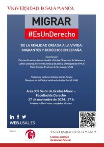 El próximo 27 de noviembre tendrá lugar a las 17.00h en el Salón de Grados Minor el coloquio Migrar #EsUnDerecho, organizado por la Clínica Jurídica de Acción Social de la Facultad. Se adjunta cartel informativo.