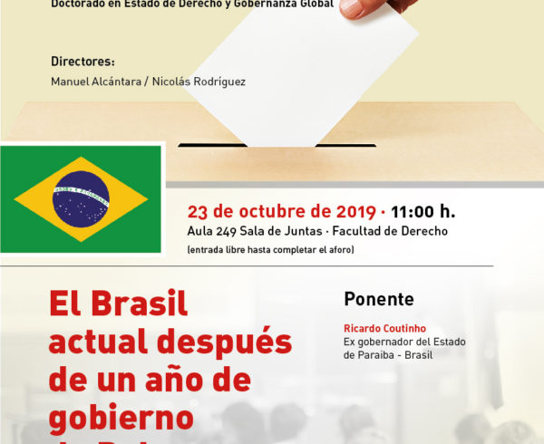 OBSERVATORIO GLOBAL URNAS Y DEMOCRACIA – DOCTORADO ESTADO DE DERECHO Y GOBERNANZA GLOBAL SEMINARIO: El Brasil actual después de un año de gobierno de Bolsonaro PONENTE: Ricardo Coutinho (Ex Gobernador del Estado de Paraiba – BRASIL)Leer Más
